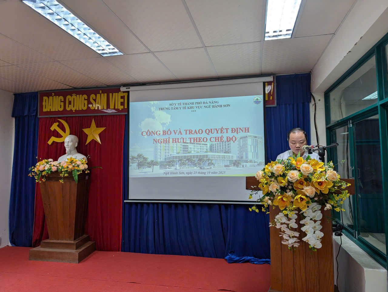 Chiều ngày 23/10/2025, Trung tâm Y tế khu vực Ngũ Hành Sơn tổ chức giao ban toàn viện quý III, báo cáo tình hình thực hiện nhiệm vụ trong 9 tháng đầu năm và đề ra phương hướng triển khai công tác cho 3 tháng cuối năm, nhằm đảm bảo hoàn thành các mục tiêu đề ra. Đồng thời công bố và trao quyết định nghỉ hưu theo chế độ cho Điều dưỡng Hồ Thị Hoá, khoa Nội – Nhi – Truyền nhiễm và khen thưởng đột xuất cá nhân, tập thể có thành tích xuất sắc trong công việc.