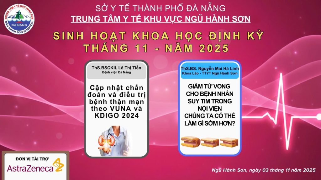 - Ths. Bs. Nguyễn Mai Hà Linh – Phụ trách khoa Lão – TTYT khu vực Ngũ Hành Sơn, cập nhật về “Giảm tỉ lệ tử vong cho bệnh nhân suy tim trong nội viện: Những điều chúng ta có thể làm sớm hơn”