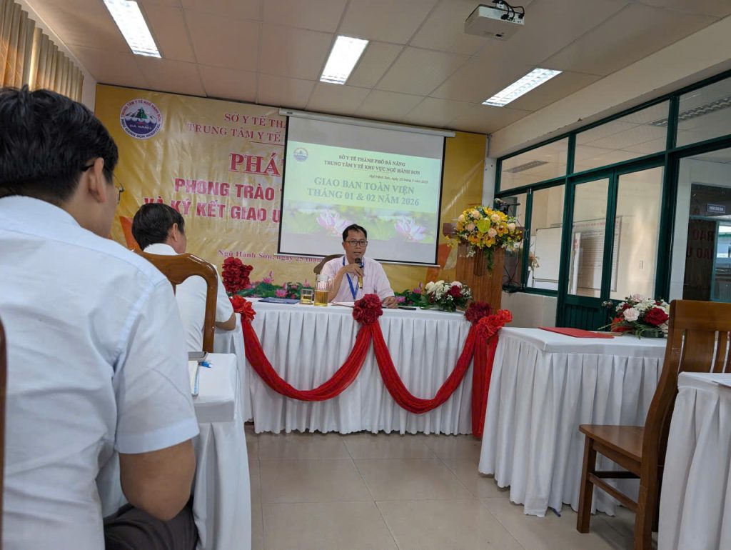 Chiều ngày 25/03/2026, Trung tâm Y tế khu vực Ngũ Hành Sơn đã tổ chức buổi Giao ban toàn viện nhằm tổng kết hoạt động chuyên môn tháng 1&2, đồng thời triển khai kế hoạch cho quý II/2026.