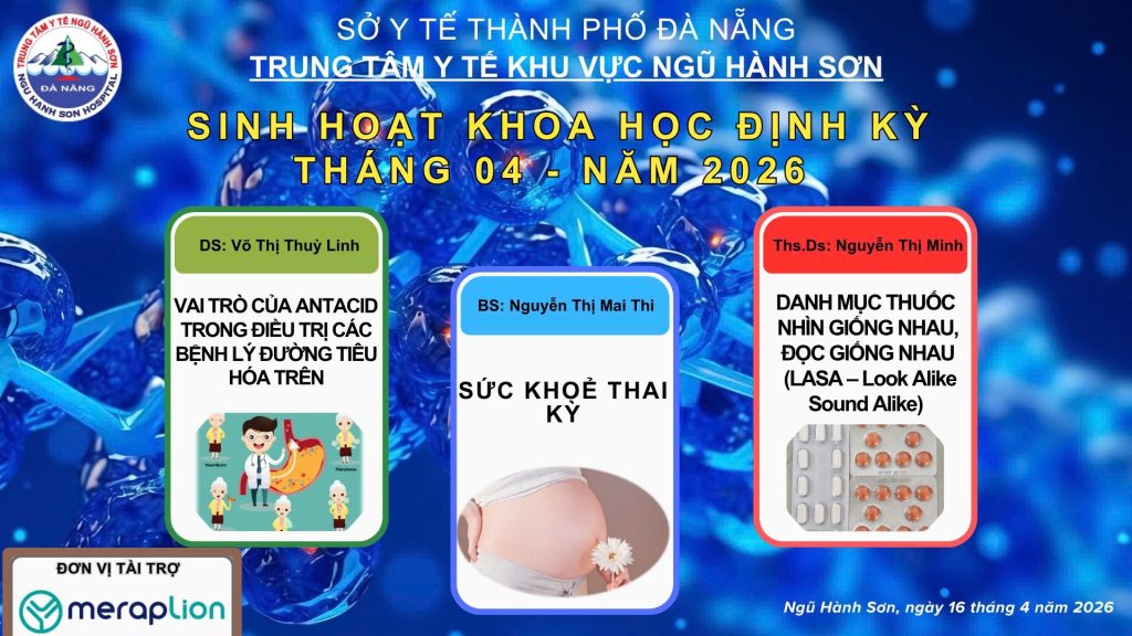 Chiều ngày 16/4/2026, Trung tâm Y tế Khu vực Ngũ Hành Sơn tổ chức buổi Sinh hoạt Khoa học định kỳ Tháng 04/2026 cho bác sĩ, điều dưỡng, dược sĩ và toàn thể nhân viên y tế, nhằm cập nhật kiến thức chuyên môn và nâng cao năng lực cho đội ngũ cán bộ y tế.